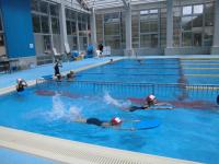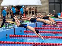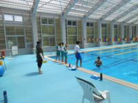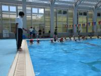 プールサイドも大変暑い中でしたが、歓声を上げて児童は頑張っていました。
