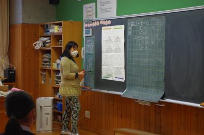 学級活動 お楽しみ会を行っています。歌や楽器の演奏発表、いす取りゲームなどを行っています。