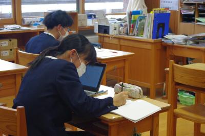中学3年は、明日から公立入試が終わる3月9日(水)までオンライン授業になります。