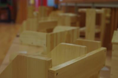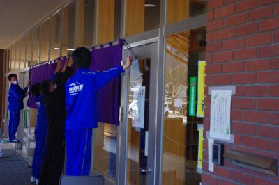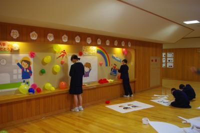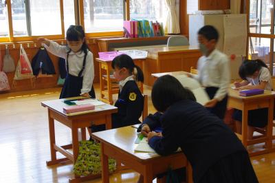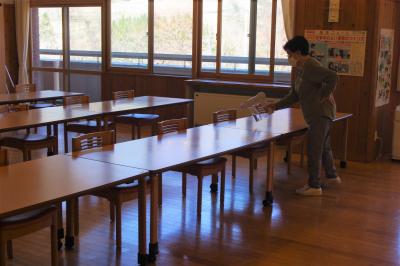 明日の入学式準備を小学校新5・6年生と中学校新2・3年生で行っています。