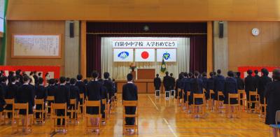 また、午後の入学式では小学1年生2名、中学1年生13名を迎え、児童生徒74名、教職員を合わせて104名でスタートします。