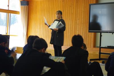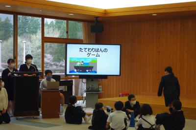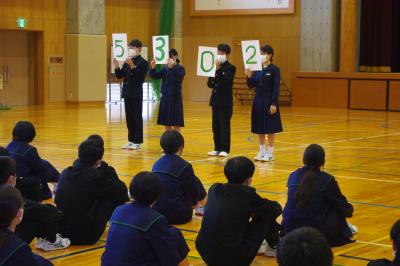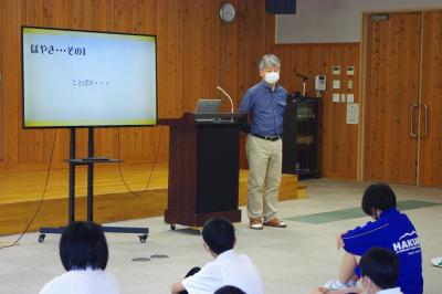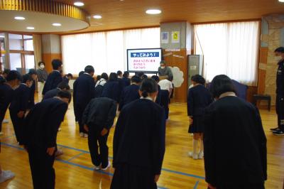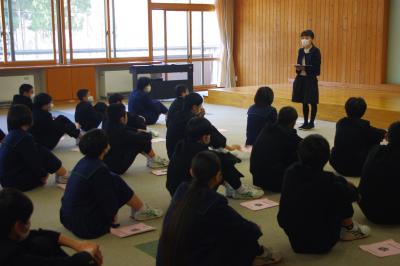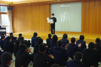 今年度から毎月1回全校集会を行い、毎回先生が一人話をしています。