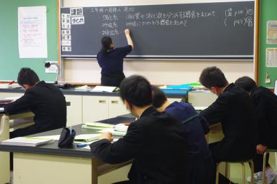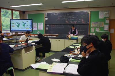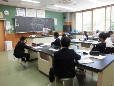 理科 一年間の授業の流れなど理科の授業のオリエンテーションを受けています。