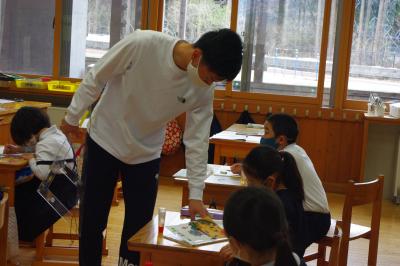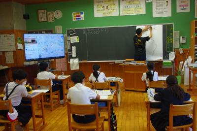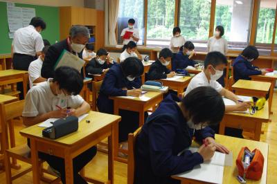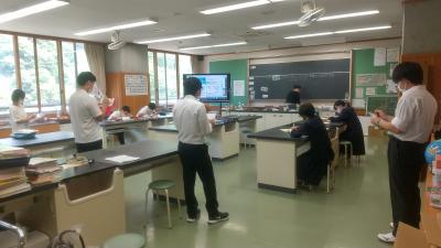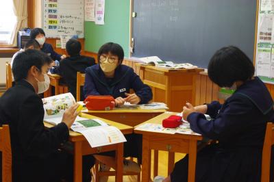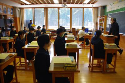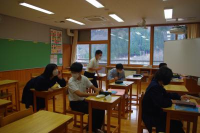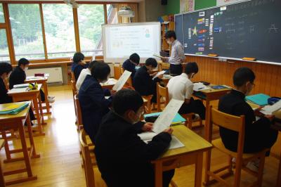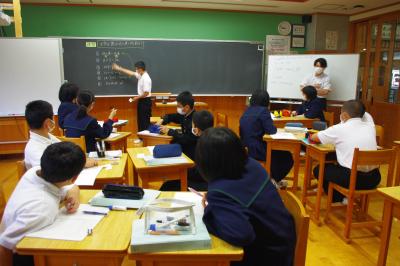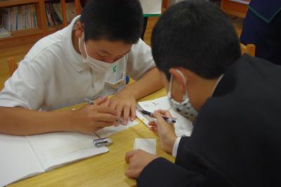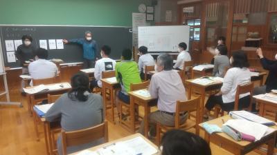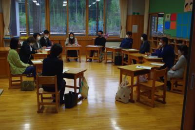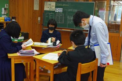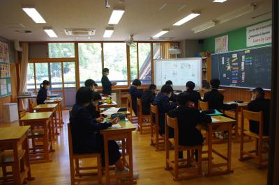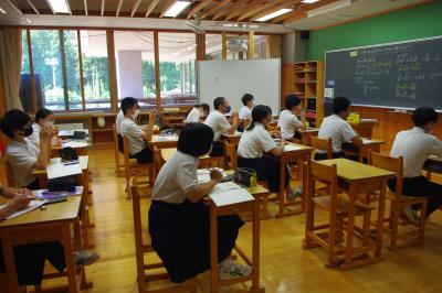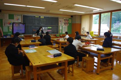 今日も若手の先生方が授業を参観しています。いしかわ師範塾の指導主事の先生をお招きして、助言をいただいています。その後、参観した先生達で感想を交流しています。