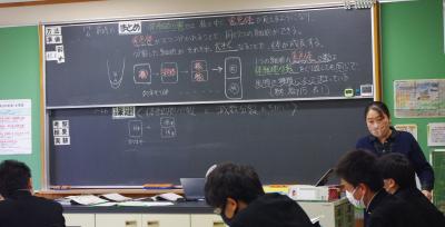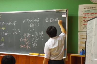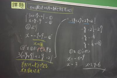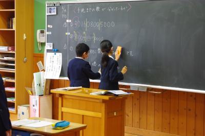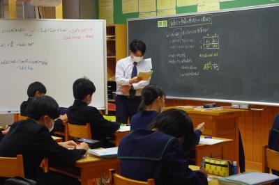 数学 文字を使った式において、表現の規則性を見つけています。気づいたことを生徒が発表したり、学び合ったりと主体的な学習が展開されています。