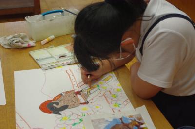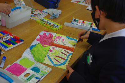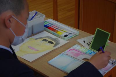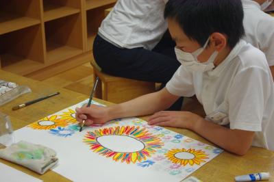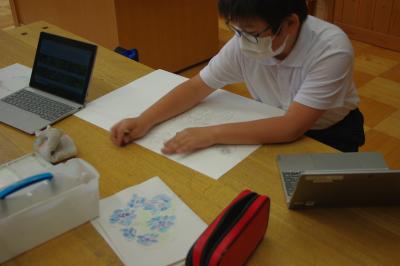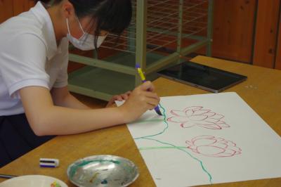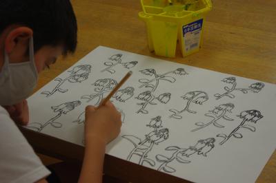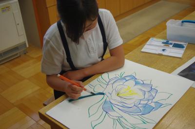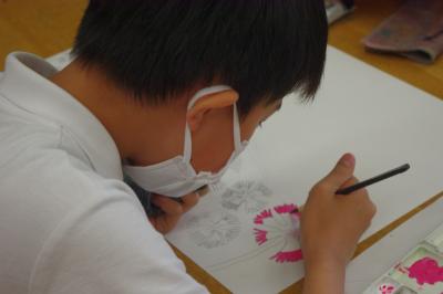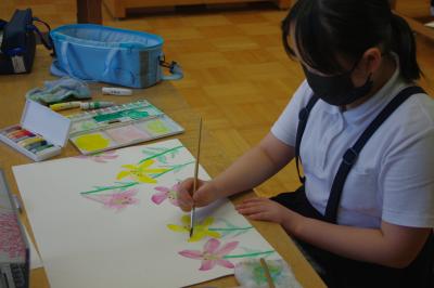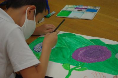 図工 花の色塗りを始めています。児童からホームページにぜひ掲載を!との声が。
