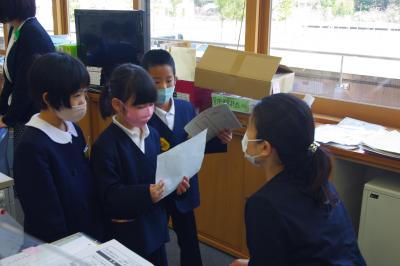 総合的な学習の時間 地域で働く人にインタビューするため、訪問の依頼電話をかけます。事前に筆箱を電話に見立てて練習しています。本番は緊張している様子でしたが、無事約束を取りつけることができています。何事も経験が大切ですね。