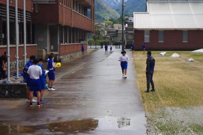昼休みは中学生有志が学年・男女分け隔てなくドッジボールを楽しんでいます。