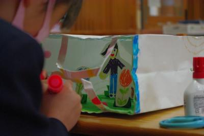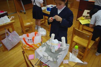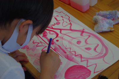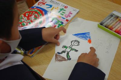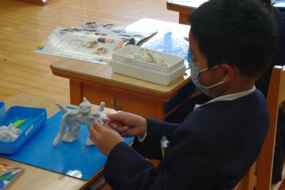 図工 教室の中にあるものを元に、元気の出るマスコットを創作しています。