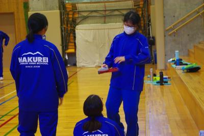 夏季部の卓球・水泳・陸上部、冬季部のアルペン・クロス部が紹介しています。白嶺中の生徒は、夏季部と冬季部、それぞれで1つ所属し、活動しています。