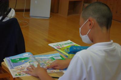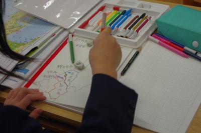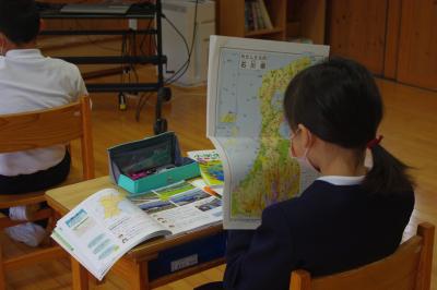 社会 白山市の交通について、地図を使いながら学んでいます。
