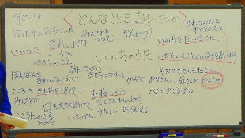 授業の最後に自分が学んだことや友達から学んだことを同級生に伝える、