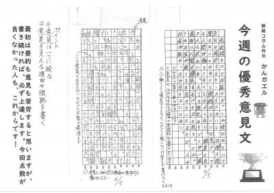 国語 意見作文を発表しています。相手に合わせることも大切だが、自分の思いを言えることも大切だなど、各自の意見を発表しています。