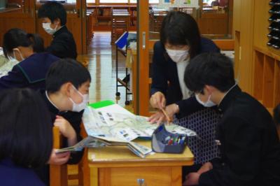 総合的な学習の時間 観光客に地域の自然の魅力を伝えるために、おすすめスポットの情報を集めています。