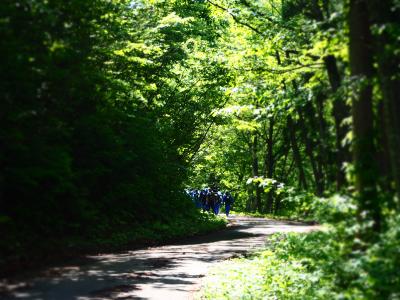 マラソン記録会 運動場から学校裏の円山公園内山道を駆け抜ける、本校ならではのマラソンコースです。みんな最後まで一生懸命走っています。これまでの練習の成果を、見に来た保護者の皆さんにも見せています。