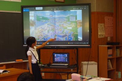 社会 住んでいる町について学んでいます。自分の考えをクラスメイトに伝えています。