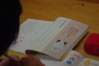 国語 『ちょっと立ち止まって』という説明文を通して、筆者が伝えたいことを読み取っています。