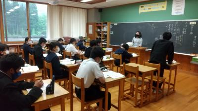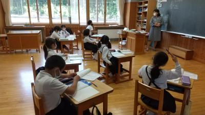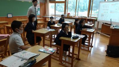 研究授業ということで、小中の先生が集まり、授業を参観しています。