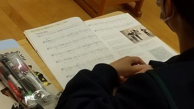 6年生もリコーダーの練習をします。演奏するために階名を書いています。