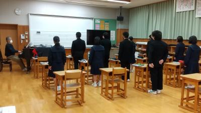 生活・体育委員会の中学生が朝のあいさつ運動を行いました。
