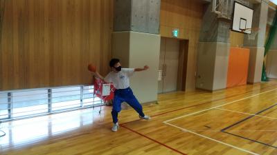 先生の投げる姿を見て、どうやったらうまく投げられるかを話し合い、実践しています。