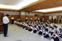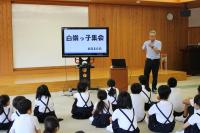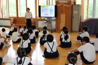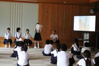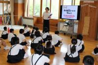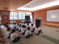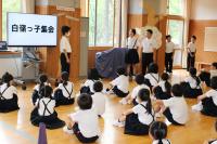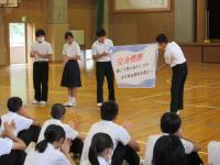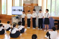 〈小学校〉「白嶺っ子集会」生活・放送委員会は、夏休みの生活のきまりを寸劇で説明しました。また、栄養教諭は熱中症を防ぐために大切なことをお話ししました。