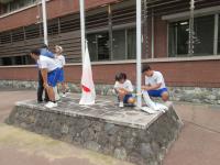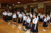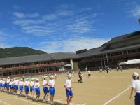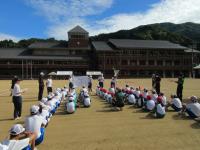 今日は小中合同で運動会の開閉会式・玉入れ競技の練習を行いました。紅団・白団共にきちんと団ごとにまとまって並んでいる姿は立派です。暑い中ですが、休憩をとり、給水対策を講じて練習に臨んでいます。