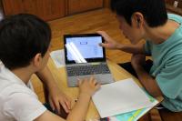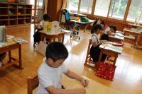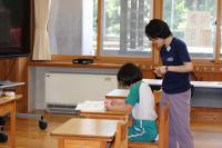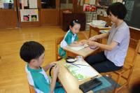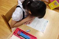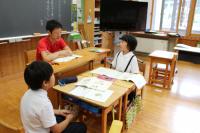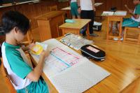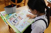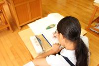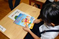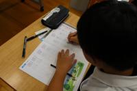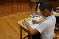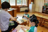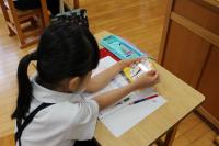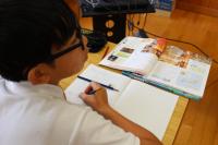 1年 小学校で初めての夏休み。宿題の内容を確かめています。