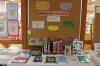 図書館前のコーナーには「平和に関する本」や「7月誕生の作家の本」が展示されています。