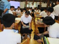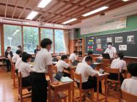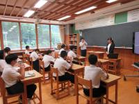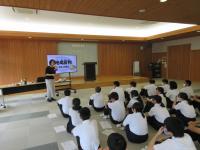 今日は先生方による朝講話を行いました。月一度、交代で先生が全校生徒に向けて様々なお話をします。今日は異国文化に驚いた話や郷土愛に関する話でした。生徒は興味深く聞いていましたね。