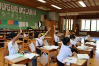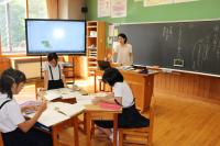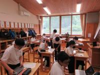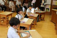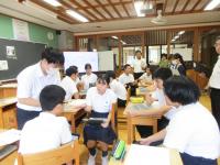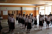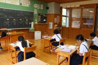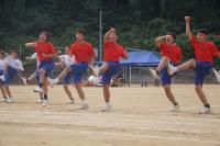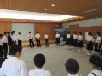 6限目は小学校56年生と中学生との合同応援練習です。どちらの団も張り切って練習していますね。中学生が小学生と指導する頼もしい光景が見られます。