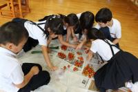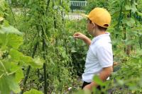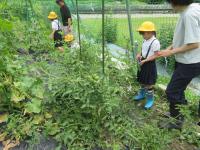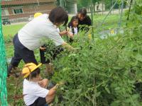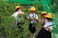2年 生活科 畑の作物も夏休みに入る前に収穫します。ミニトマトがたくさん!