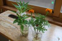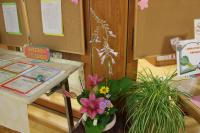 地域の方からこの季節のきれいなお花をいただきました。ヒガンバナ、ベンケイソウ、クジャクソウです。校務員さんが生けてくれました。