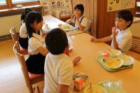 1・2年 音楽 1年生は「しろくまの ジェンカ」の曲に合わせてステップしながら歌っています。2年生は鍵盤ハーモニカで「かえるの合唱」を上手に演奏しています。