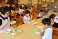 今日の給食メニューはもうすぐ始まるパリ五輪にちなんだ料理です。ラタトゥイユや鶏肉の香草パン粉焼き、そしてデザートはクレープです。