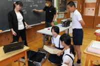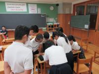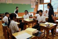 白山市の姉妹都市であるイギリス・ボストン町より6名が来校し、本校生徒との交流会を行いました。生徒は積極的に英語で話しかけたり、一生懸命身振り手振りを使ってコミュニケーションをとろうと努力する姿が見られました。また空手の紹介や、卓球部の活動にも参加しました。