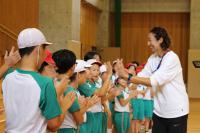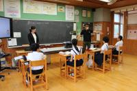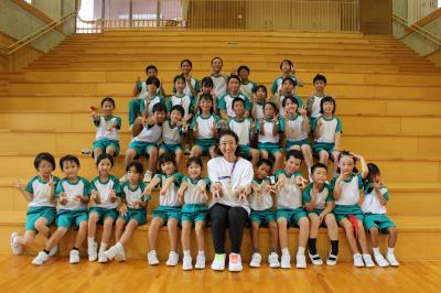 「アスリーチ」とは、スポーツの世界で活躍したアスリートが、体育の先生として各地の学校を訪問する事業です。白嶺小には、元Vリーガー、元プロビーチバレー選手の黄秀京(ファン・スギョン)さんがいらっしゃいました。今回のテーマは「体の動きを高める運動」です。ストレッチや体幹トレーニング、リトミック、ボールを使ったゲームなど、楽しみながらいろいろな体の動きを体験することができました。スギョンさんは「なんでも一度はチャレンジをしてみる気持ちを忘れない」と教えてくださいました。スギョンさん、楽しい体育の授業をありがとうございました。
