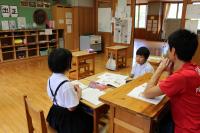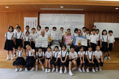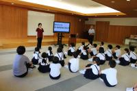 今回は駐在所のおまわりさんや朝の登校を見守ってくださる地域の方々をお招きして、日頃の感謝の気持ちを伝える会でした。おまわりさんからは「友達と仲良く過ごすために大切なこと」についてお話をしていただきました。思いやりをもって生活することや、困っている友達には声をかけてあげることなどを学びました。またお招きした皆さんに、手紙と花束を渡しました。