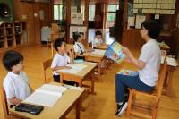 朝の「パワーアップタイム」 お話ボランティアの方々による読み聞かせが行われました。