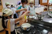 3・4年 お楽しみクッキング 白玉団子のフルーツポンチを作っています。