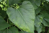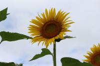 ひまわりの草丈が2メートルを超えました。茎もずいぶん太くなりました。葉の大きさは子どもの顔の大きさくらいあります。