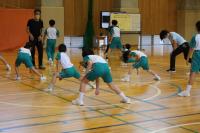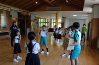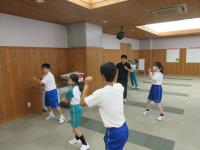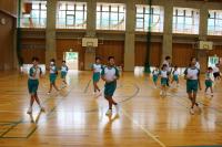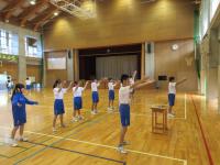 〈小学校〉運動会練習が始まりました。今日は1~6年生によるダンス練習の第1回目が行われました。「みんなに笑顔と勇気が届くようなキレのあるダンスをしよう」と実行委員の5・6年生が練習のめあてを全校のみんなに伝えました。さっそく、曲のサビの部分の振り付けを練習しました。