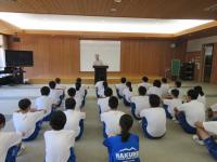 子どもたちが薬物乱用の危険性・有害性について正しい知識を持ち、薬物乱用を拒絶する規範意識を向上させるとともに、薬物乱用について適切な対処や行動を理解させ、正しく判断し行動できる態度を身に付けさせることが必要です。そこで小学校6年生と中学校1年生を対象に、警察の方を講師として学習する機会を設けました。