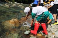 3年 「イワナ放流体験」 水産資源や河川の大切さを知り、自然環境の保全や水中の生き物への関心を高めることを狙いとした事業です。イワナを観察したり生態についての話を聞いたりした後、イワナ約3,000尾を放流しました。