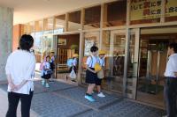 「育友会あいさつ運動」 週初めから、保護者の方々が学校玄関や各地区のバス停であいさつ運動を行いました。