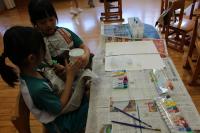 3・4年 図工 3年「光のサンドイッチ」、4年「紙わざ!小物入れをつくろう」 紙を使った工作をしています。