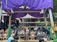 白峰で奉納相撲大会が行われ、本校生徒も出場しました。土俵上では非常に白熱した取組が見られました。多くの声援を受け、生徒達は奮闘していました。