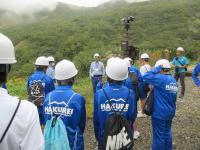 本日、ジオパーク学習の一環として白山火山学習教室現地研修が行われ、1年生が白山中飯場観測所付近に赴き、大学の専門家による解説や、金沢地方気象台、国土交通省の担当の方々の説明を聞きました。普段立ち入ることができない地域や施設まで見学することができ、生徒たちにとって非常に貴重な機会となりました。