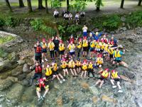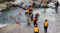 今日は夏のジオパーク研修のため、吉野谷地区の瀬波まで出かけました。瀬波川の沢登り体験です。ライフジャケットやヘルメットをしっかり着用し、安全・安心を第一に生徒みんなでゴール地点を目指しました。水はとても澄んでいて冷たかったですが、ゴール地点では達成感からみんなとてもいい笑顔でしたね!