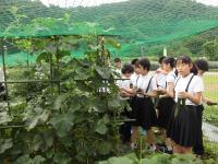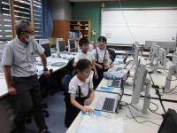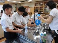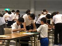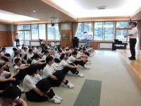 部活動の練習内容などは、先輩である中学生が説明をします。暑さにめげずにどの部活動も熱心に取り組んでいました。